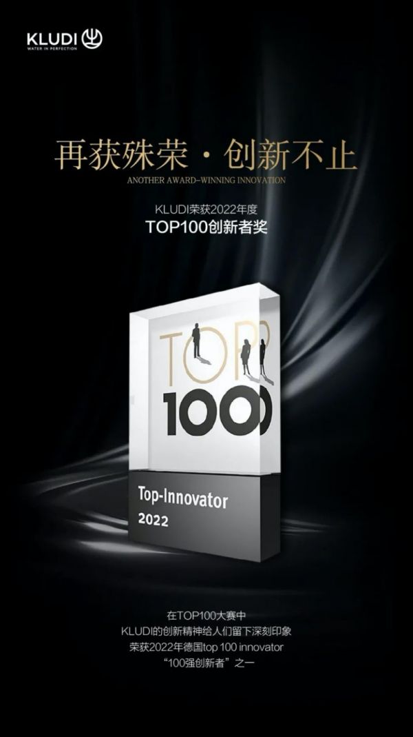 KLUDI荣获2022年度TOP100创新者奖。科鲁迪的创新理念是真正从用户的角度出发,如KLUDI COCKPIT Discovery淋浴系统的独特操作理念,风靡市场;另外,还有能改变传统上拉式分流器的创新分水技术,真正将便捷的卫浴体验带给用户。