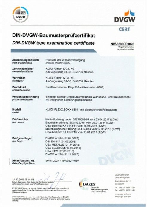 水是生命之源,龙头的品质会关系到水质安全。科鲁迪的龙头以德国DVGW认证证明了其产品品质,这对于水龙头、管件等产品来说,不仅在德国业内很有权威性,在整个欧洲的行业里也属于头部认证。想要获得该认证并不容易,需要非金属部件通过KTW(卫生学)及W270 (微生物)标准的化学测试。一般能通过这种化学测试的龙头,必须采用符合欧洲饮用水标准的材料,但能够达到这种标准的,即使在欧洲也是凤毛麟角。