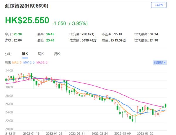 智能快讯|瑞信:降海尔智家目标价至43.8港元 评级跑赢大市