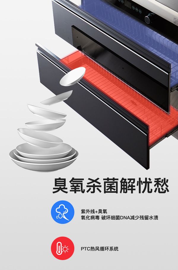 优格深挖用户需求,消毒柜款集成灶采用紫外线加臭氧的双重消毒模式。