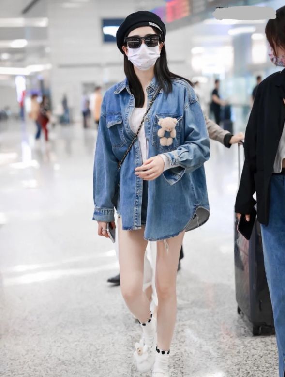 白鹿的这一身穿搭很简单,中长款的宽松牛仔衬衫,与下身的热裤长度平齐,轻轻松松凸显大长腿,搭配牛奶白T恤,蓝白相搭,能够衬托出皮肤更加白皙。这一种机场造型风格有些欧美复古风,黑色的墨镜和印花的贝雷帽,则让这种风格更加突出。