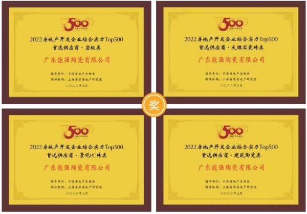 作为与众多百强房企达成长期战略合作,优秀工程案例遍布全国各地的能强瓷砖再次受邀参加盛会,并连续6年蝉联中国房地产开发企业“Top500首选供应商·建筑陶瓷类”,入围产品系列涵盖大理石瓷砖、景观PC砖、岩板三大类别,再次彰显能强品牌强大的企业实力,与匠心如一的服务精神。