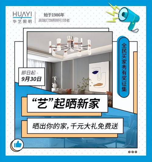 在“宅家就是做贡献”的主旋律下,华艺照明向你发出了线上邀请,加入“艺”起晒新家——全民买家秀有奖征集活动,秀出“梦中情家”的美,拯救无聊之余还能获得万元心动大奖!