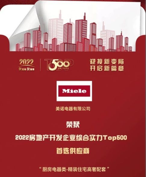 德国美诺Miele荣膺2022房地产开发企业综合实力TOP500首选供应商