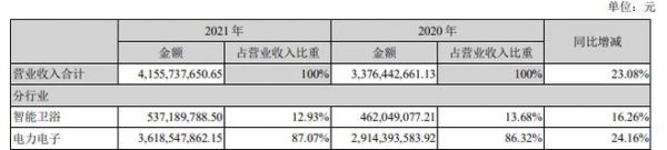 麦格米特:2021年营收41.56亿元,智能卫浴5.37亿元
