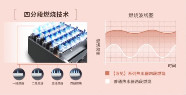 图2 格瑞泰“浴见”系列热水器采用四分段燃烧技术