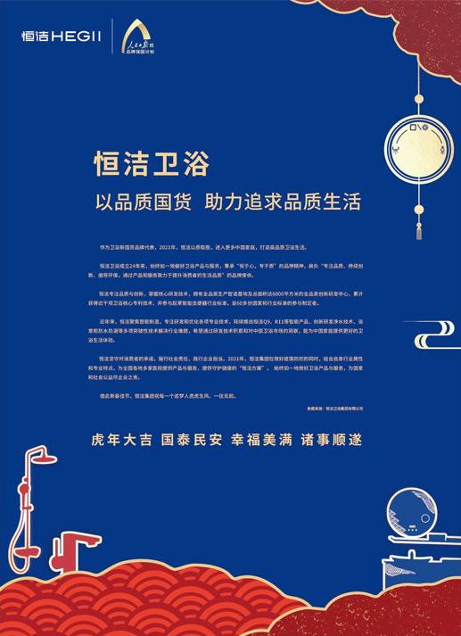 恒洁卫浴为新国货品牌的代表,该品牌成立于1998年,已经有20余年的发展史。从品牌成立开始,恒洁卫浴一直秉承“恒于心,专于质”的品牌精神,从产品到品牌,坚守国货的创新与发展,更是坚守对消费者的承诺和践行社会责任。从稳步成长为行业龙头品牌,到如今引领整个行业的创新技术,承担起了一个大国品牌的责任担当。向社会和公众展示了自己的创新研发硬实力,彰显了新国货品牌引领潮流的雄心壮志。