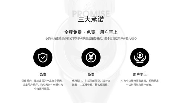 小狗吸尘器还将专注的理念贯穿于每个与用户接触的节点。传统家电服务中的售后维修环节严重影响消费者体验,因此小狗吸尘器在2014年就创新性推出中央维修服务模式。该模式以中央维修仓为中心,以第三方快递为网络,实现待修产品从用户到中央维修中心送修、再二次快递到用户的逆向物流过程。保修期内整个服务过程无条件全免费,不区分责任,而且一切解释权归消费者所有。