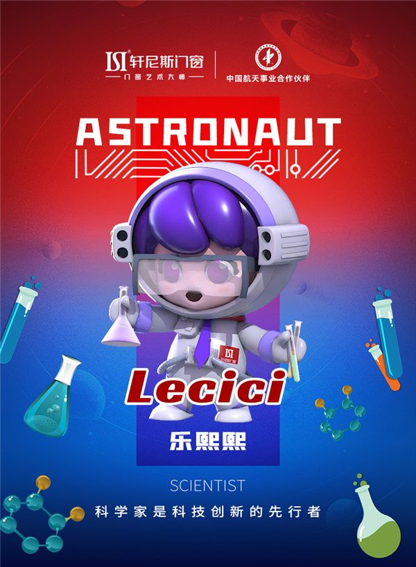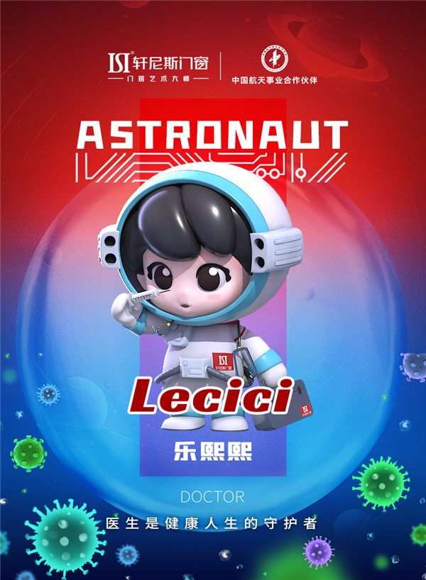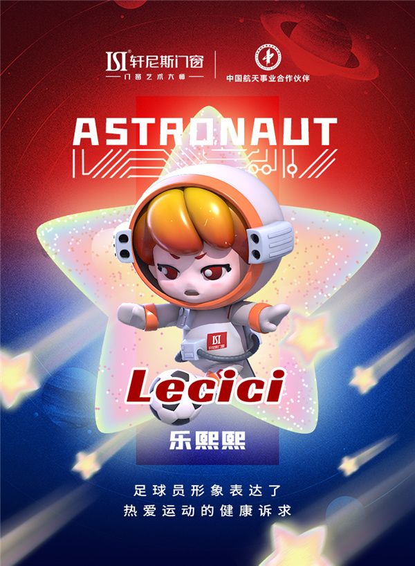 轩尼斯门窗航天IP形象乐熙熙(Lecici)与乐柔柔(Leyoyo)隆重亮相。潮玩IP 形象表达轩尼斯门窗健康家居的生活理念与艺术生活的美好向往,同时带着绿色环保理念与门窗艺术大师形象策划设计出画家、医生、园丁、厨师、科学家、大提琴家、足球员的不同人物属性公仔,其形象设计在契合本身职业属性的同时,以当下“潮玩”流行趋势为创作灵感,传递了年轻一代的生活美学。