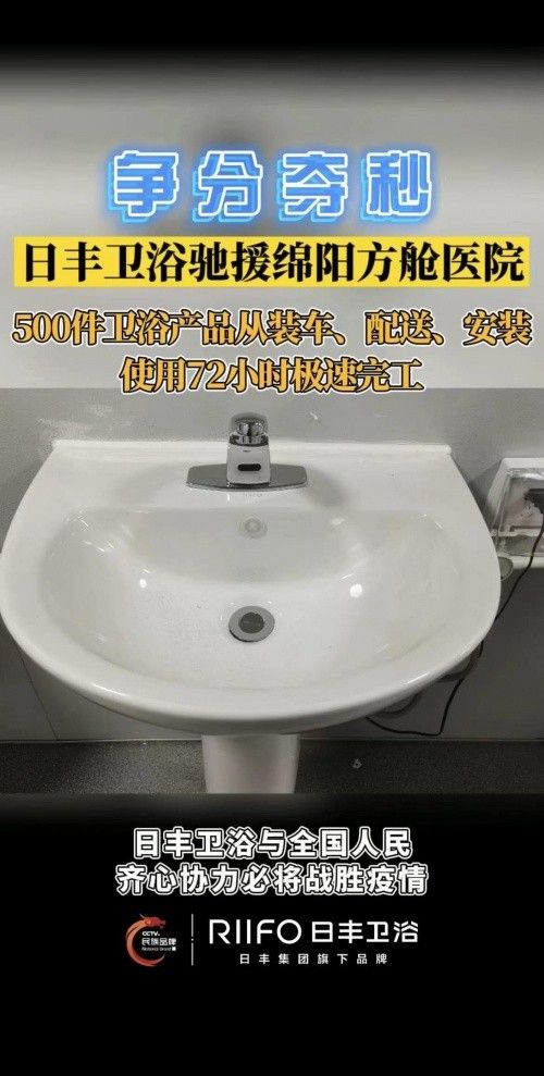 当下疫情火急时刻,它的建设牵动着绵阳人民的心。在得知项目对卫浴物资的需求后,自4月16日晚起,日丰卫浴闻令而动,紧急调配卫浴产品(明杆淋浴花洒98114、立柱盆3002-1、蹲便器B-4029S等),以最快速度驰援抗疫一线。日丰卫浴500多件产品从装车、配送、安装到使用72小时极速完工,为绵阳方舱医院提供基础设施使用保障。