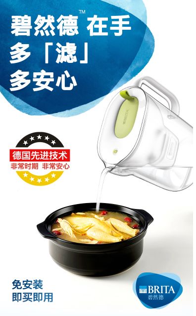 碧然德滤水壶以先进的微珠清流技术搭配天然椰壳材质的活性炭滤芯,可以很好的过滤掉水里的重金属1(指铅、铜)余氯2、杂质3(指泥沙),过滤后的水更好的还原了水的原味,能够更好的还原食材本味,享受食物美味,收获身心健康。