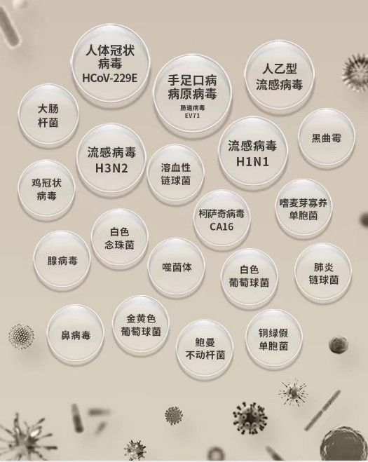 **去除、杀灭19种病毒细菌为: