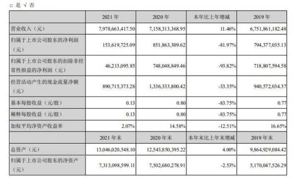 东鹏控股称,2021年下半年以来,房地产行业承压,部分房地产行业客户出现了资金周转困难、商业承兑汇票逾期未兑付的情况,部分房地产企业出现流动性问题,对其报告期业绩带来较大影响;同时叠加国内外疫情反复、双碳政策和限电限产、能源和原材料价格上涨等多重不利因素,致使公司本年度利润下滑。2021年,归属于上市公司股东的净利润为1.54亿元,同比下降81.97%。