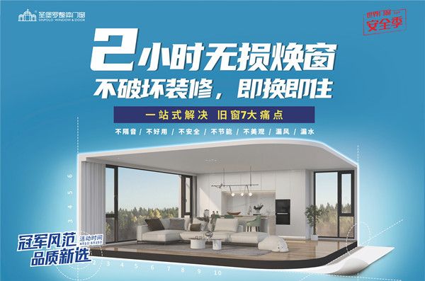 安全优质、快速方便、性价比高,已然成为圣堡罗整体门窗激活“焕新”市场的核心竞争力。2022年圣堡罗门窗迎来第三个“世界门窗安全日”,从4月1日开始,圣堡罗整体门窗已上线“2022圣堡罗世界门窗安全季品牌盛典”,钜惠让利,多重福利叠加,只为品质门窗赋能安全人居!而 “冠军之选,安全焕新”圣堡罗整体门窗第3届415世界门窗安全日主题发布会将定于5月11日在佛山正式开启。