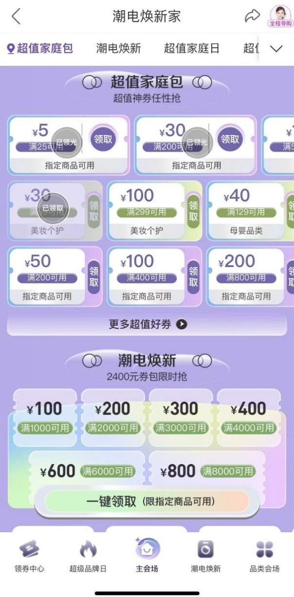 同时,百货方面还有超值家庭包任性抢,涵盖食品、酒水、美妆个护、家居日用、母婴等品类,购物满额直接抵用超值家庭包中对应面值的优惠券,实惠就是这么简单!爱美的仙女们,一家之主们,赶紧抢起来!