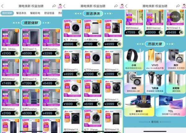 家电方面,从参与活动的品牌来看,既有格力、美的、海尔、容声、海信、松下、小天鹅、创维、TCL、三星、卡萨帝、华为、索尼、伊莱克斯、博西、史密斯等家喻户晓的大牌家电齐聚,也有九阳、小米、苏泊尔、飞利浦、戴森、科沃斯、格兰仕等生活精致小家电捧场,还有VIVO、小米、联想、华硕、惠普、华为、Apple等大众喜爱的智能数码带你开启美好潮生活。全场好物单品优价基础上,可直接叠加2400元惠民消费券包,助你潮电焕新无压力!