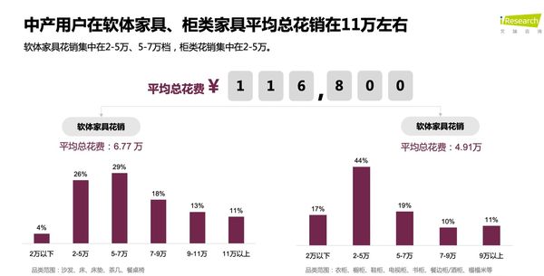 就在不久之前,顾家联合艾瑞咨询发布了《2022新中产家装趋势洞察白皮书》,据数据显示,新中产在软体和柜类消费的总预算约9万元,但实际装修过程中往往会出现预算超支的情况,其平均花费接近12万元,其中软体家具花销超半数比例在2到7万左右,不难发现,超出30%左右成为常态,软体也成为支出部分的大头。而在顾家79800元套餐中直接给出了6万元的软体家具配置券,不仅满足了新中产人群对品质的要求,也在价格上给予了十足的诚意。