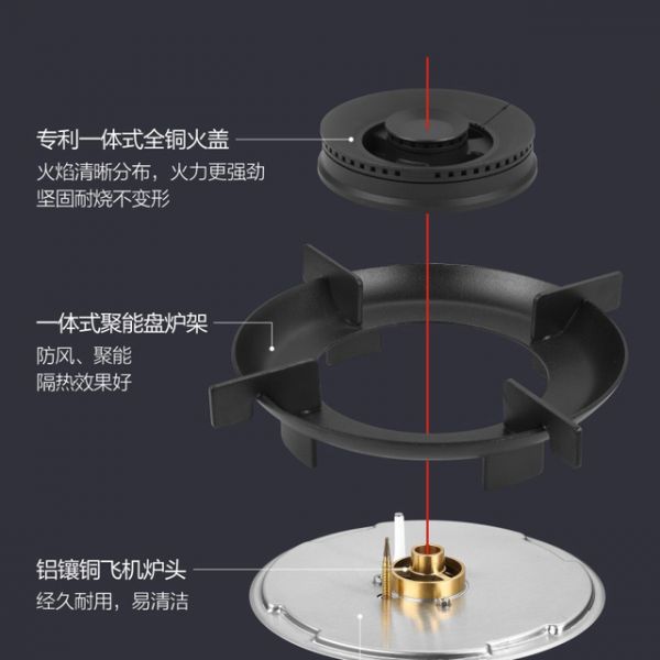 燃气灶是厨房里最为常用的煮食用具,挑选燃气灶的时候,除了火力调节外,燃气灶内置用料也是要着重关注的点。欧普厨电H29-3燃气灶采用是1000+吨位锻压机锻造而成的全铜火盖,优势在于火焰分布清晰且不易变形,铜帽点火针不易破裂损坏,大大提高的点火性能,则炉架做成一体式聚能盘炉架,隔热效果好,能够防风聚能。