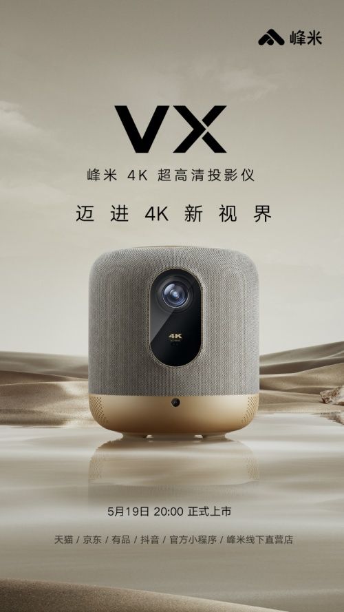 在新的2022年,峰米投影的新作VX即将问世,除了4K超高清分辨率外,峰米VX还能为消费者带来怎样的感官体验?在配置方面还有哪些创新突破?超高清的画质是否能为投影仪的使用带来新的场景?5月19日20:00,峰米VX 4K超高清投影仪将全渠道正式上市,正如这款新品的口号“迈进4K新视界”所言,峰米这次发布的新品是否能将消费者带入试听的“新视界”,我们拭目以待。
