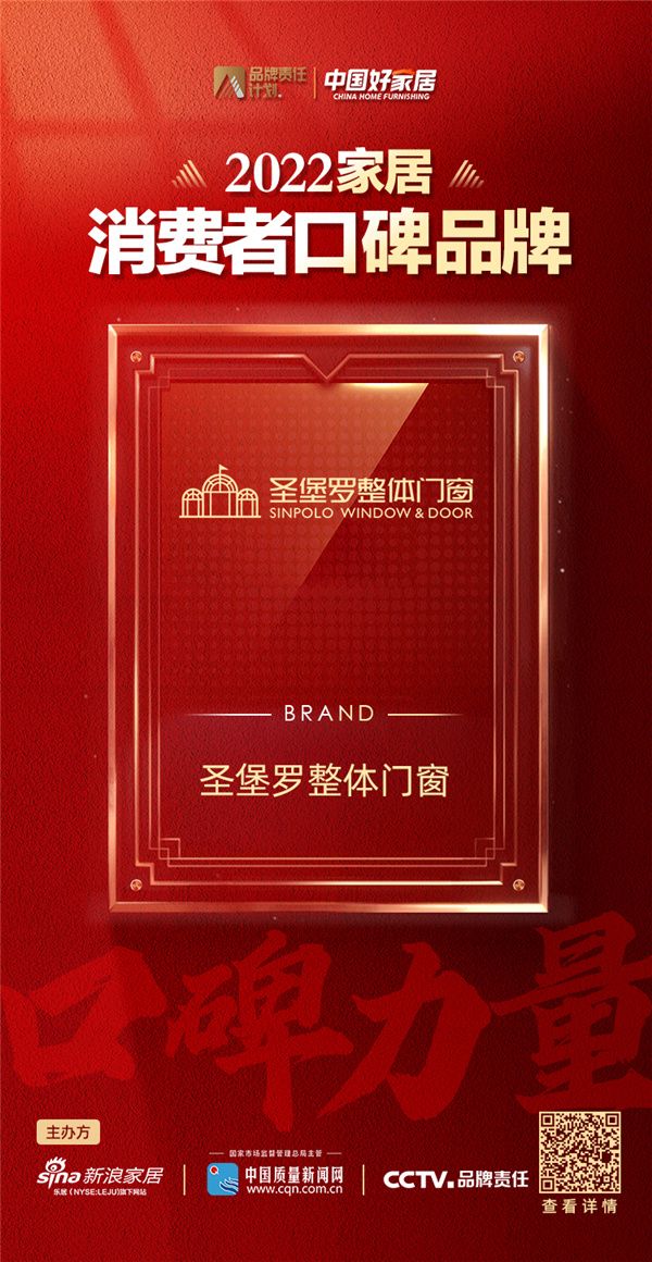 圣堡罗整体门窗荣登2022家居消费者口碑榜