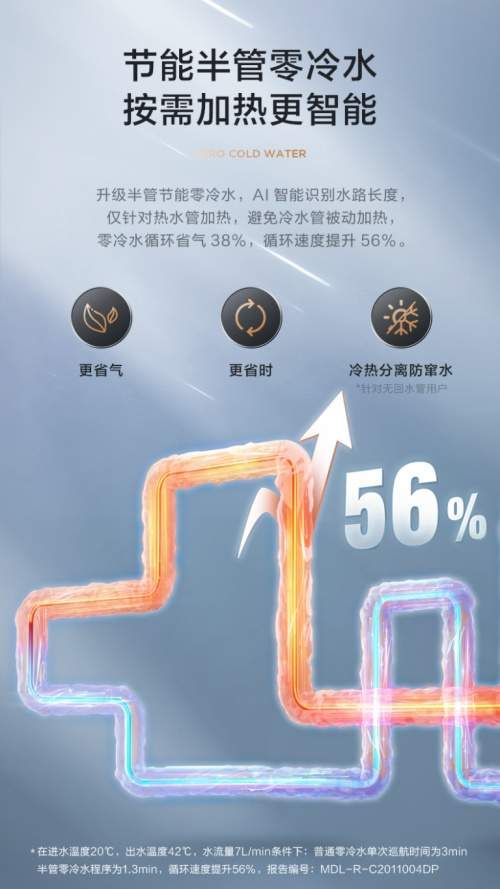 美的一级静音燃气热水器晨曜QT6升级半管节能零冷水技术,AI算法自动识别全屋水路长度,仅针对热水管加热,避免冷水管被动加热,半管预热快速响应,无需全屋管道加热巡航。零冷水循环节约38%的燃气,速度提升56%,缩短预热时间节能更省气,让你省心也让钱包减负。