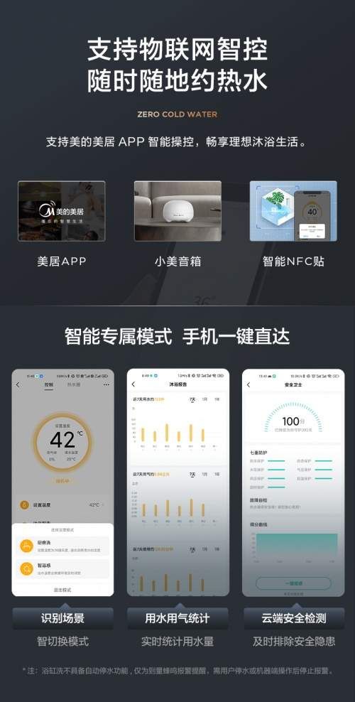 美的一级静音燃气热水器晨曜QT6加持AI智慧云感温,网络互联通过大数据分析和计算,学习用户的日常调温习惯,并根据地域天气温度、湿度和供暖条件进行调整,智能感温免去手动调试温度的烦恼。用户下载美的美居APP后可连接手机移动端,即可实现远程操作,能实时看到热水器的运行状态,随时随地预约热水、查看用水用气报告,热水器大小动态尽在掌握之中,运筹帷幄就是如此简单。