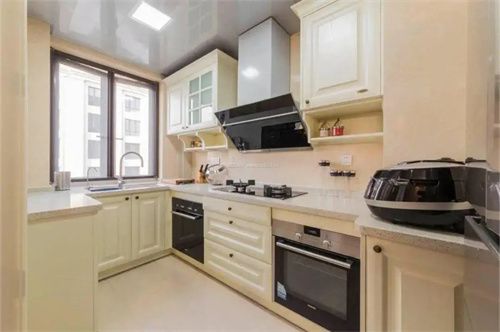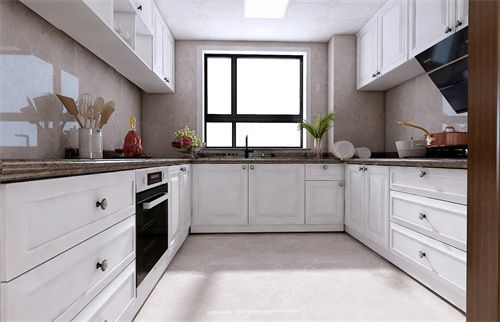 2、定制橱柜时我们需注意橱柜的布局是不是合理。一般烹饪顺序为洗、切、炒菜,因此在进行橱柜设计时是按照水槽、台面空闲区域、灶具的顺序进行设计的。如果是L型、U新橱柜,水槽、切菜区、灶具可分布在相邻的两个台面上。在进行设计布局时,灶具要离烟道近一些。