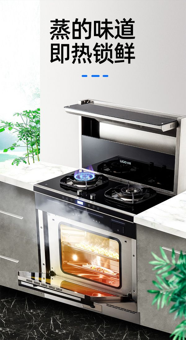 优格集成灶的蒸箱采用动态循环加热方式,可保证水不会回滴影响食物美观与口感,还能锁住食物中丰富的维他命及矿物质,同时保持食物原有鲜味。