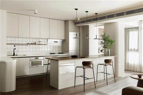 从日常维护看,三翼鸟“光年白”厨房采用的是全厨0嵌的设计,冰箱、蒸烤箱、橱柜等均采用了耐脏、耐磨材质,而且实现了无缝融合,不会留卫生死角,日常清洁更简单。