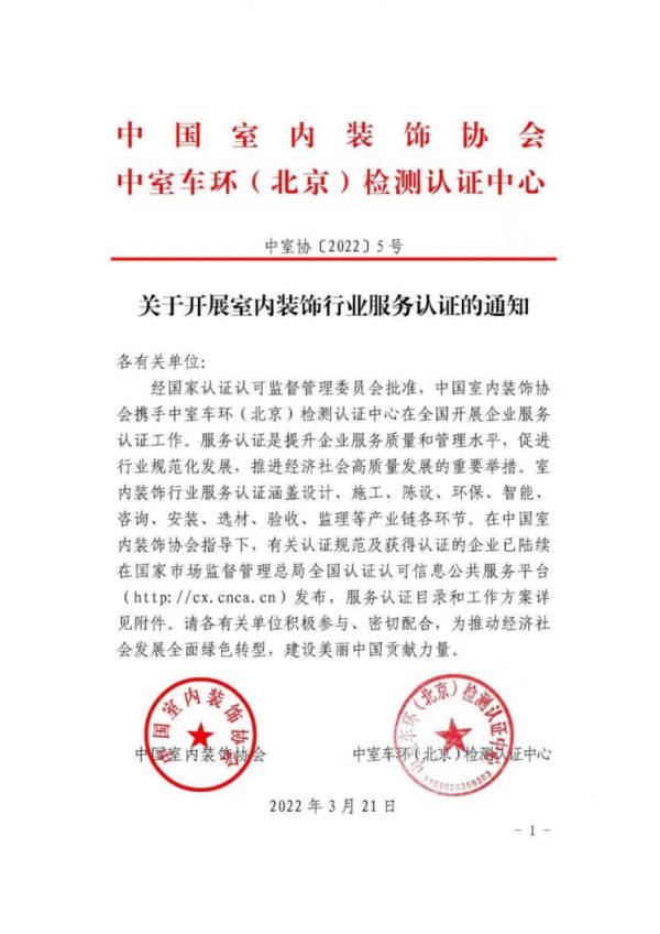 本认证由中国室内装饰协会、中室车环(北京)检测认证中心两大权威机构颁发,官方认证。