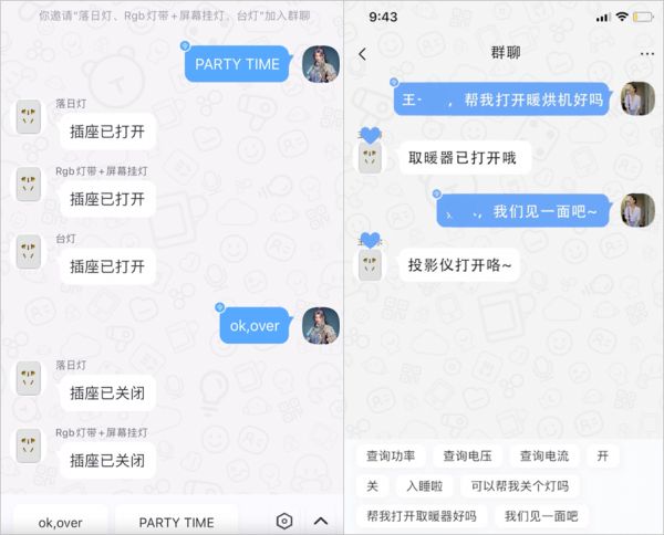 作为新入局的智能硬件玩家,畅伴与其他品牌智能插座主打“让传统家电变智能”不同,强调智能插座是一个生活小助理,可随时被调起对话,也可以把多个设备和家人、朋友都拉进群聊,在一个群里就可以轻松实现多人对多设备的智能联动。比如,当用户有多个设备同时响应的需求,传统方式一台一台地操作就很低效,而畅伴只要在群里“喊话”,就能实现“一呼百应”的效果;如果把每个设备都编好号或命个名,在聊天框直接@对应设备也能实现针对性的需求。这种聊天对话式的操控方式不仅路径更短、使用更便捷,也让用户的生活变得更加丰富、更加有趣。