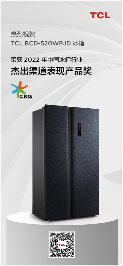TCL 星玄青520大容量冰箱获杰出渠道表现产品奖