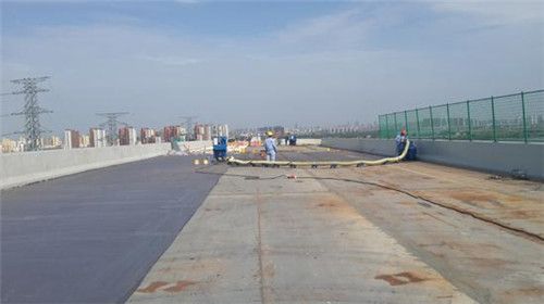 1、 先对桥面进行凿除浮碴,并用高压水将它冲洗干净,确保没有积水现象存。