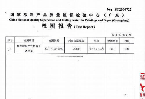 依据国家检测标准HG/T4109-2009《负离子功能涂料》,可耐美B1008美森净负离子内墙漆每s·m2含有负离子961个,远超过标准值。施工完成待负离子充分挥发后,使用专用负离子监测仪检测结果显示,施工环境内最高可达19990ions/㎠负离子释放量。