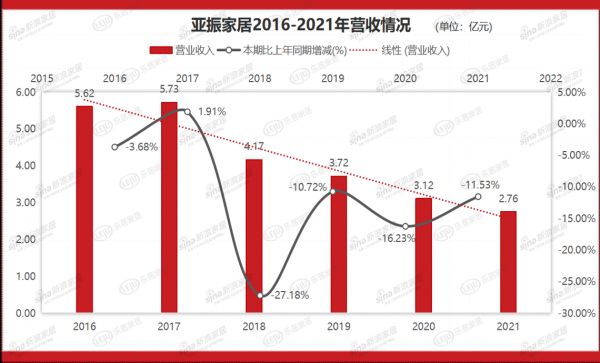 另一家出现亏损的是亚振家居,不仅业绩失色,净利更是大幅下滑近500%。
