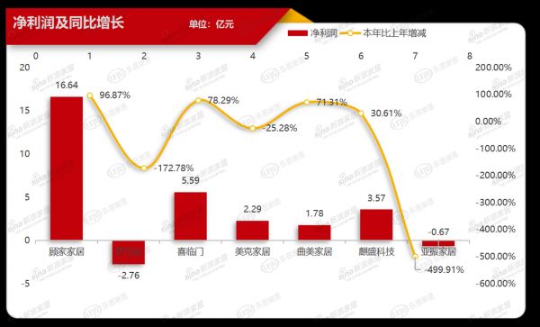 在净利润榜上,7家上市家具企业则出现了冷热不均、两极分化的状况。