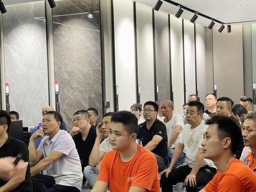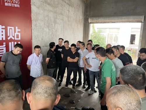 顺辉包铺贴团队岩板铺贴专家详细地对现场工匠师傅进行了岩板铺贴流程培训,针对每项工序和细节都作出了专业解释,现场瓦工师傅纷纷表示获益匪浅!