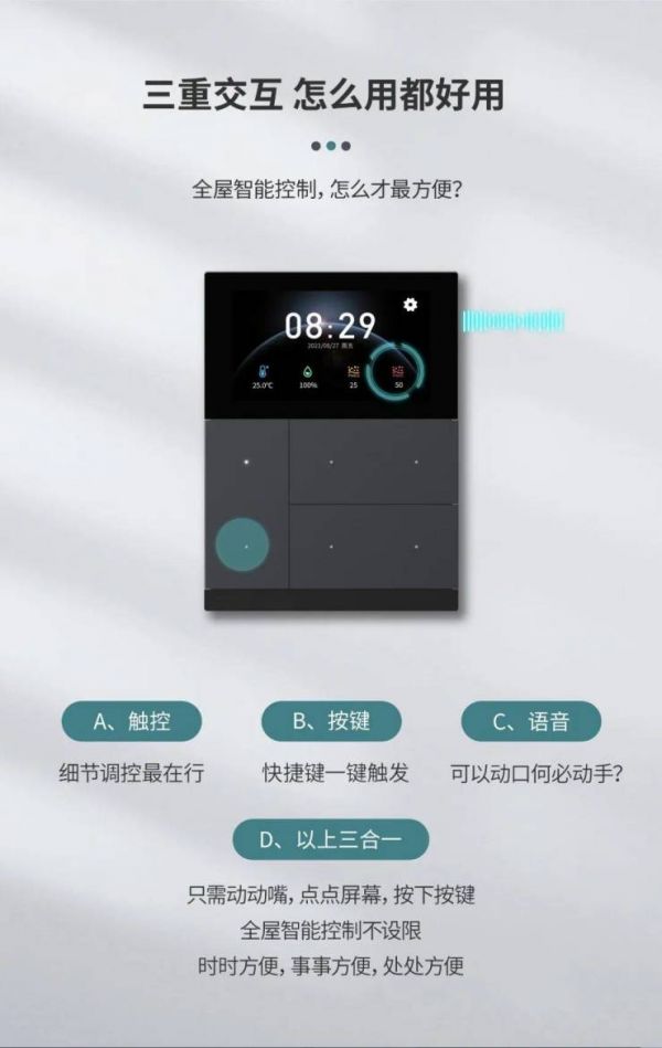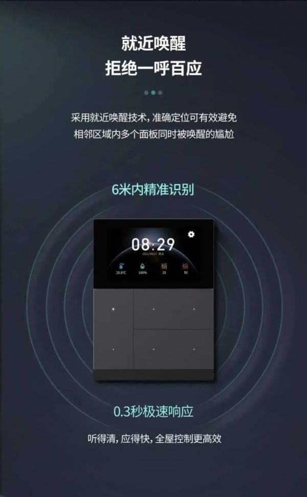 视声发布首款支持按键+触屏+语音控制交互的KNX智能面板,华尔兹智能语音面板,智能家居控制只需动动嘴,点点屏幕,按下按键,随时随地听您指挥。