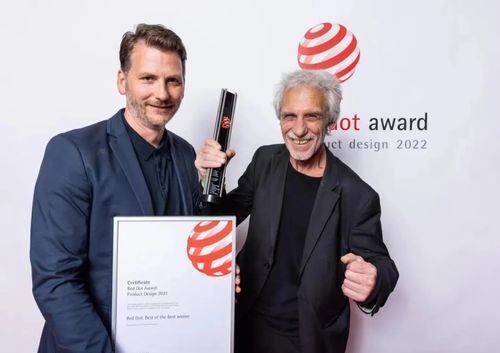 当晚红点奖最高奖项--最佳设计奖的设计者成了人们关注的焦点:来自全球40多个国家及地区的获奖者在颁奖典礼上,从红点设计奖创始人彼得-泽克教授的手中接过奖杯。BU系列淋浴房主创设计师、理想卫浴董事长危五祥因疫情原因未能出席当晚的盛会,蓝色卫浴德国设计师克劳斯先生和史坦先生作为代表到现场接受了奖项。