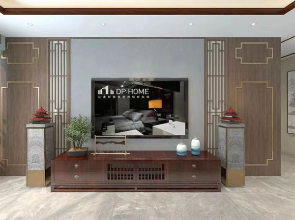 走进客厅,没有平铺山水画作,山水却处处可见。背景墙布、沙发扶手,电视柜的氛围摆件,相互映衬着,将“仁者乐山”的空间氛围推至至高点。