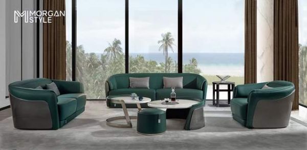 摩根世家的整套沙发设计元素来源于LV的水波纹包包,运用祖母绿的配色让空间回归到大自然,让人们享受自然放松的生活,沙发双扶手的设计,美观与实用并存。最让人映入眼帘的是沙发靠背上的这圈LV老花的间棉工艺的印花设计,立体感十足,沙发后背运用钢琴烤漆的白橡木饰面装饰,让沙发的质感再次升级,360度都是一道风景线。将祖母绿色沙发置于家中,颇有夏天果冻清新Q弹的味道。