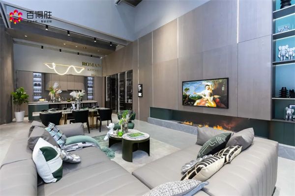 百得胜水漆整家定制新品, 凭借3底2面72道纯水漆工艺和没有8大重金属伤害的环保优势,吸引前来的观展人群络绎不绝。美式风格查尔斯顿、意式轻奢罗曼,两大系列水漆整家新品,充满着艺术格调,展厅受到广大参观者的热捧。