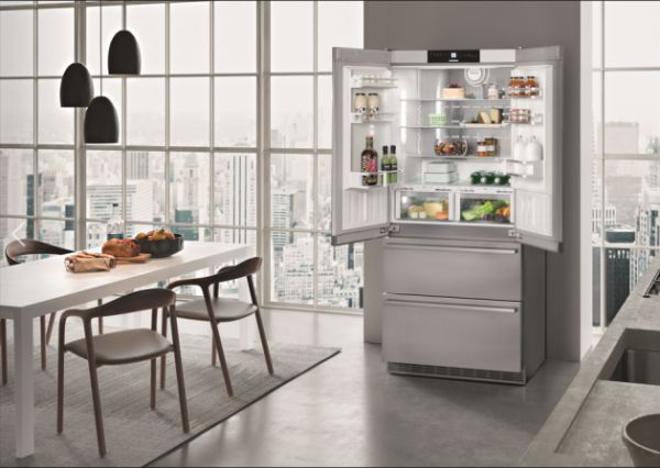 法式门冰箱是一种崭新的对开门冰箱设计思路,它将冷藏室中间的隔梁取消,形成了宽敞的横向空间布局,打破了传统对开门冰箱左右分列的空间局限,充分利用了对开门冰箱的大容积优势,便于储藏各类大小的食物。作为德国百年的制冷家电品牌,Liebherr利勃海尔也紧随市场需求,推出了集合各种“黑科技”为一体的新款法式冰箱CBNes 6256。
