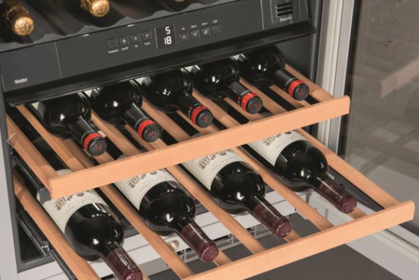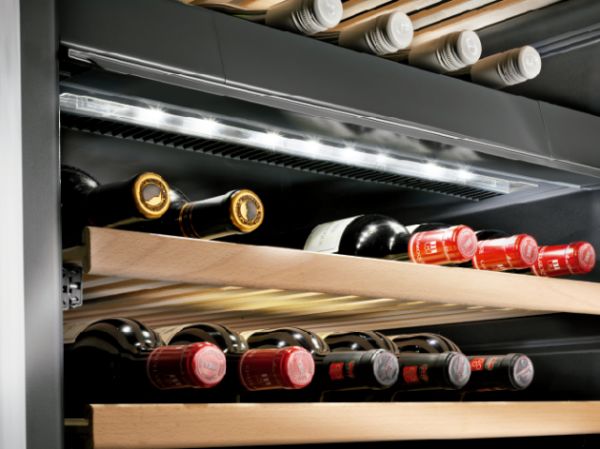 除了温度以外,湿度、震动、空气等因素,都可对红酒的储藏质量造成影响。以湿度为例,红酒柜中的空气湿度应超过50%,并将红酒呈水平位置存放,才能保持软木塞的柔软,防止木塞变干后空气进入酒瓶。为了达到合适的湿度条件,UWTes 1672酒柜设置了通风按钮,只要按下,即可根据实际需求调整红酒柜中的空气湿度。