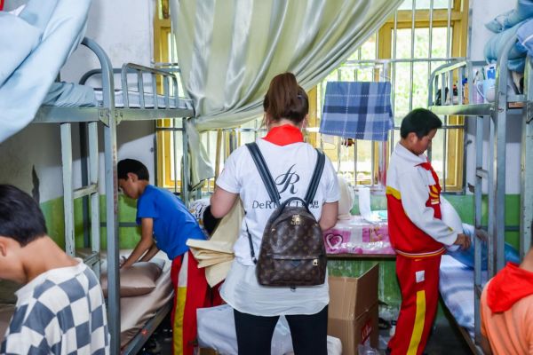 仪式结束后,慕思志愿者们跟拉戛中学师生一起将物资搬运到各寝室,帮助学生们换上,在这个过程中慕思志愿者和同学们畅聊学习与梦想,并且了解到在他们这群住校的孩子当中很多是留守儿童,还有的不远千里求学,一个月只能回一次家,但是他们仍然坚强乐观,对未来充满希望。