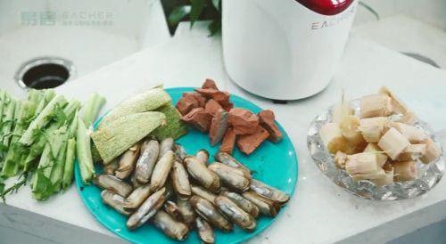 打开水龙头,启动机器,将瓜果皮、蔬菜梗、甘蔗、贝壳等塞进厨余垃圾处理器研磨腔,一起来看一下易居·爱除的研磨程度。