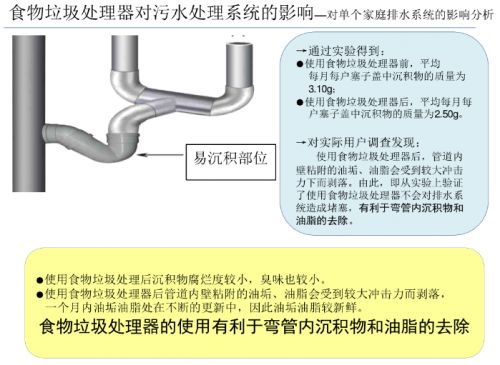 同济大学的《垃圾处理器在上海推广应用的环境经济损益研究评估报告》中指出:垃圾处理器不会对排水系统造成堵塞风险,甚至有利于弯管内沉积物和油脂的去除。