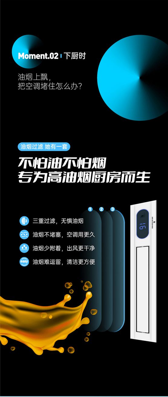 欧斯宝凉风宝AIR厨房凉霸,350*650mm极简造型,融合于顶部空间,默默地送来清凉,健康厨房一键到位,自上而下定向吹风,不吹灶台火,顷刻间凉风布满每个角落,赶走闷热。凉霸的好处是做得小巧,不占地方,性价比比较高,通过导风百叶进行换气吹风,带走夏日闷热。