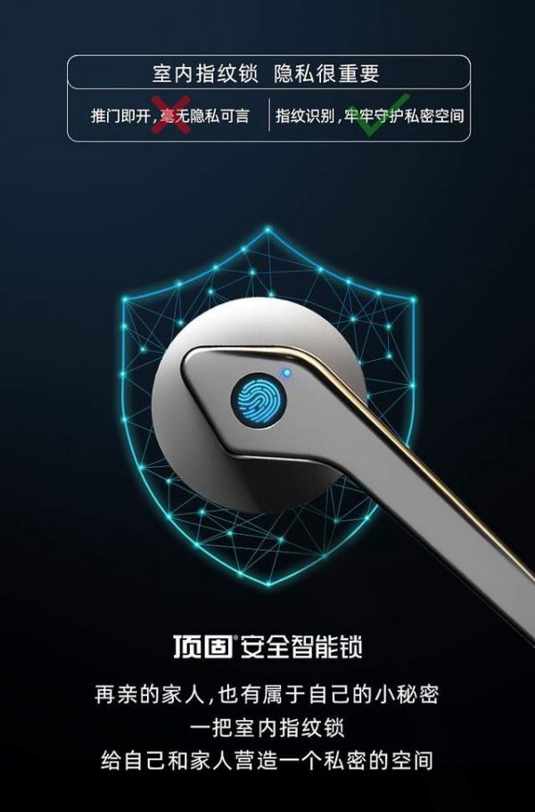 近年来,顶固安全智能锁深入研究消费者的生活方式和对家居产品的需求,推出顶固“界”系列室内指纹锁,一步跨进智能家居生活。