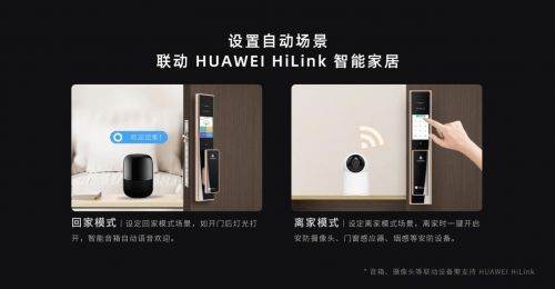 作为通过HUAWEI HiLink认证的首款带屏的全自动智能锁,青稞A7H还可以与其它HUAWEI HiLink生态产品实现智能场景联动。通过华为智慧生活APP,用户可在手机端实时查看门锁状态、开锁记录等门锁相关信息。